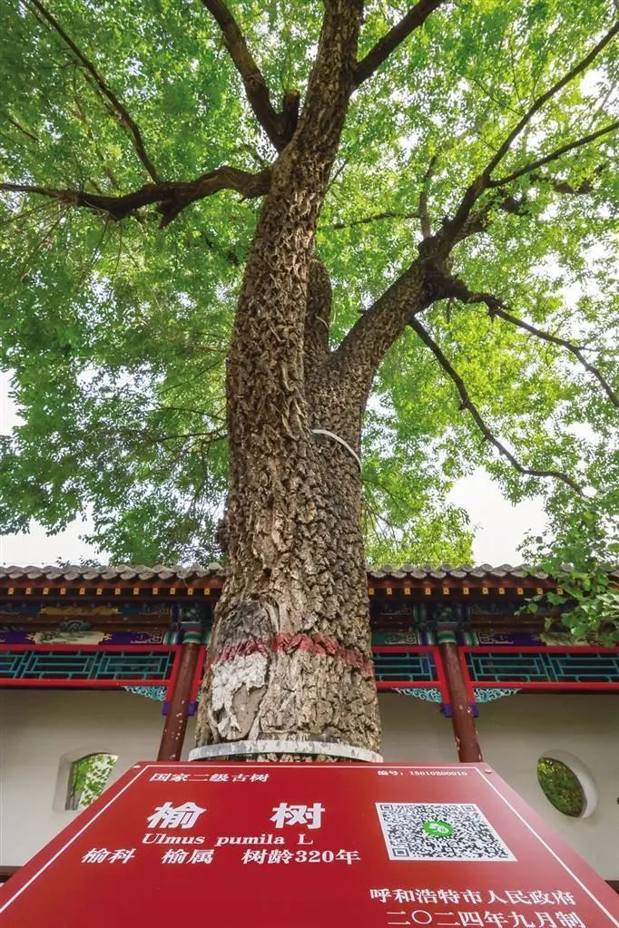 怎么看护这些“绿色文物”?呼和浩特市园林建造服务中心副主任王晓敏展现了一份科学答卷:“2023年头,市园林中心和北京林业大学的专业团队为呼和浩特城区内29株古树制作了‘身份证’,‘一树一策’精准施策,为古树因地制宜,精准维护。”以将军衙署博物馆古树为例,“经过开始的测定,咱们针对每一棵古树所在的环境和情况、成长情况、土壤的理化性质的不同进行‘开方’,例如丁香树周边替换透水铺装保证根系呼吸,古榆树加装支撑架抵挡劲风,每半年检测土壤成分,动态调整水肥配比。虫灾管理也要‘开方’,如移除附近病树、定时生物除虫,让一切的古树都能具有最佳的成长环境。”王晓敏说。